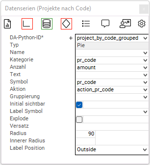 pr_codeDas Symbol, das auf das Projektcode-Datenfeld angewendet wird, wird als Symbol für die Kreissegmente definiert.