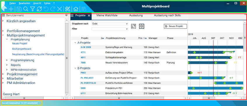 Die PLANTA-Oberfläche ist in folgende feste Bestandteile gegliedert: