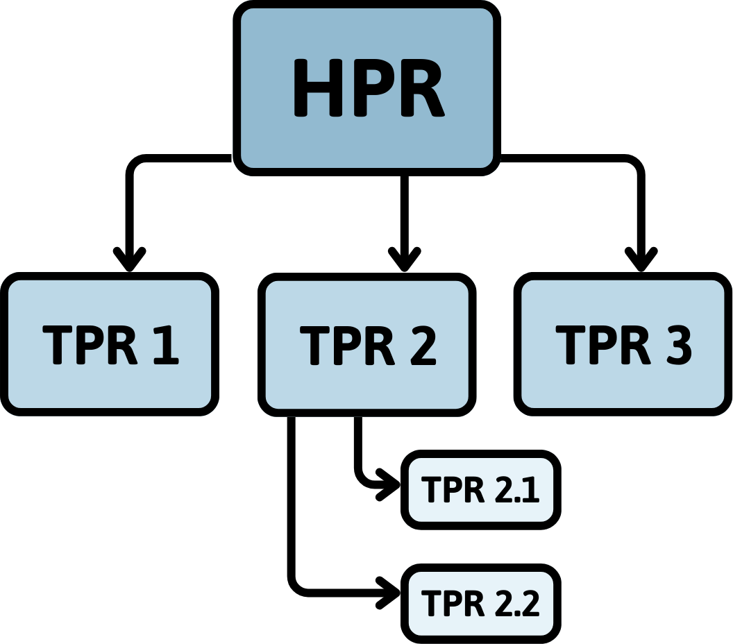 • HPR ist ein Hauptprojekt und gleichzeitig das übergeordnete Projekt für Teilprojekte TPR 1, TPR 2 und TPR 3.