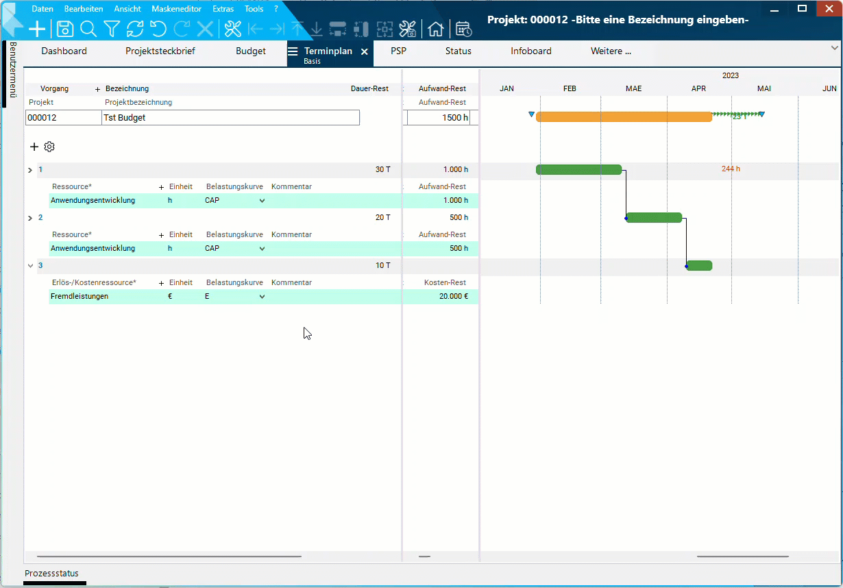 • 4. und nun die genehmigten Budget-Werte als Budget für das Projekt vorgeben