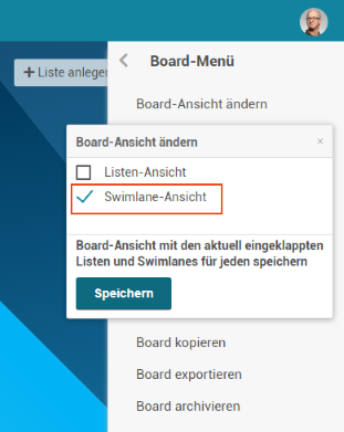 Den Eintrag Board-Ansicht ändern auswählen.