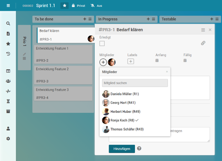 Georg Hart möchte nun den Karten Board-Mitglieder zuweisen, die für die Erledigung der entsprechenden Aufgaben zuständig sein sollen: