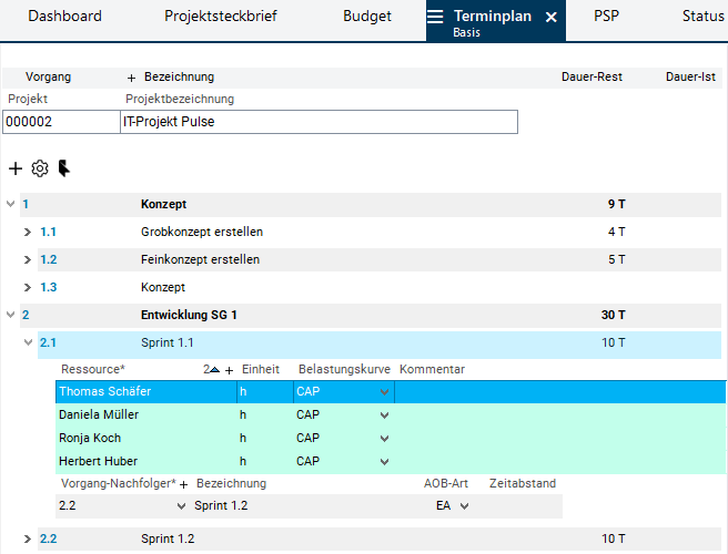 PLANTA pulse: Vorgangs-Detailplanung
