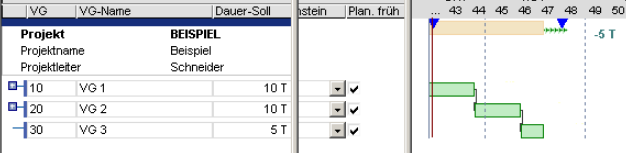 Werden Vorgänge spät eingeplant (Parameter Planung früh = ), haben sie Gesamtpuffer = 0 .