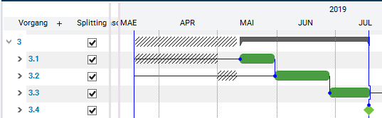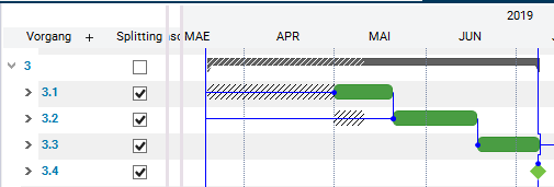 Es kann sinnvoll sein, bestimmte Vorgänge bereits bei der Planung auf Splitting = zu setzen, wenn bekannt ist, dass diese Vorgänge i.d.R. unterbrochen werden.