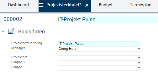 Georg Hart wird automatisch in das Feld Manager eingetragen. Da er der verantwortliche Projektmanager des neuen Projekts sein soll, den Eintrag nicht verändern.