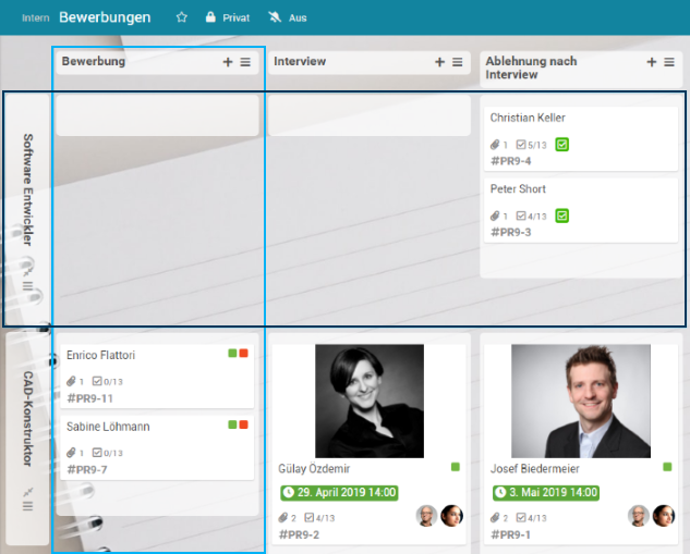 Listen und Swimlanes können innerhalb eines Boards per Drag&Drop umsortiert werden.