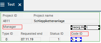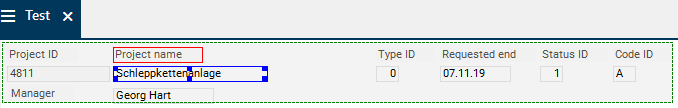- For cascading elements, mark the element to be moved to the background (here, the Project ID field).