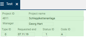 - If the new data field is inserted in the Data Areas module and the Window parameter is not set to 9 but directly to the required window (1-3), the field is displayed in the top left corner of the respective window without the corresponding heading.