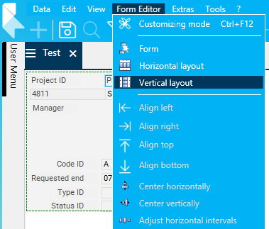 - Select the Form Editor → Vertical layout menu item.