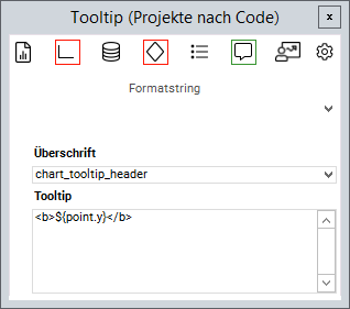 - Via the Format string listbox you can insert different strings in order to format the tooltip as desired.