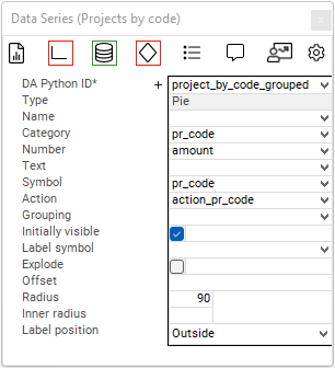 • Create a chart on the data field of the chart area and configure it as a pie chart.