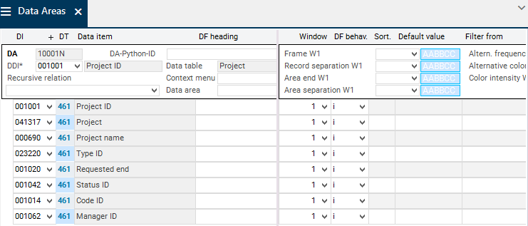 Copy the ID number of the Project ID data item to the DDI data field in the Data Areas module by using Drag&Drop copy.