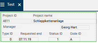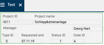 - If the new data field is inserted in the Data Areas module and the Window parameter is not set to 9 but directly to the required window (1-3), the field is displayed in the top left corner of the respective window without the corresponding heading.
