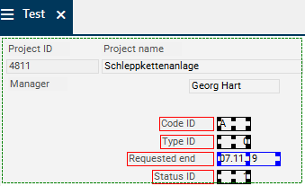 - As a result, the green mark disappears and the form area is surrounded by a dashed line and can be edited.