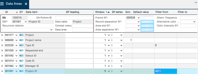 All data items of data table 461 Project are displayed.