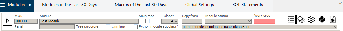 When the newly created Test Module module is opened, it is displayed as a submodule in the Customizing panel. In order to open the module in its own panel, activate the