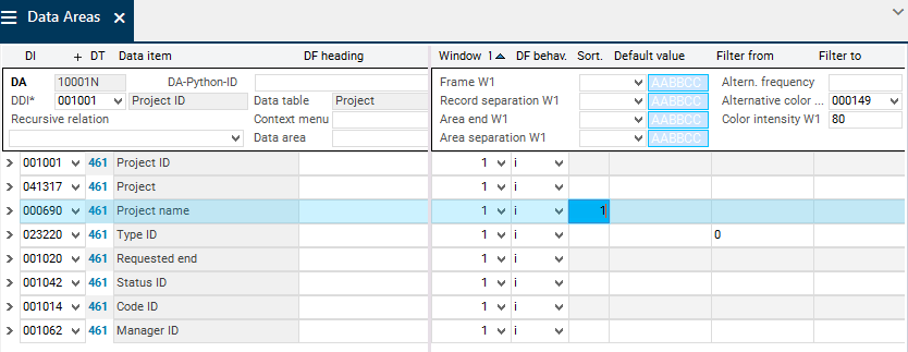 Copy the ID number of the Project ID data item to the DDI data field in the Data Areas module by using Drag&Drop copy.