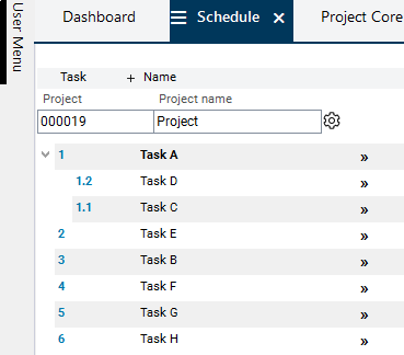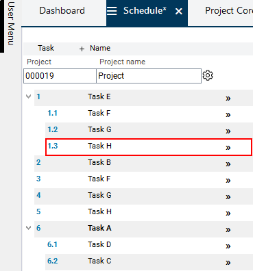 Result: Task 1.3 has been created automatically with data from task 5 and has been positioned below task 1.2.