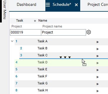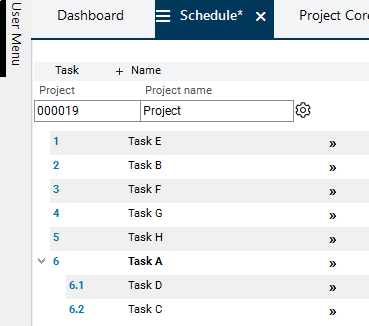 Result: A new task has been created with the data from task 5 and has been positioned above task 1.