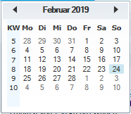 - By clicking on the calendar symbol at the right margin of the date field or via ALT + down-arrow you can open the date listbox and select the required entry.