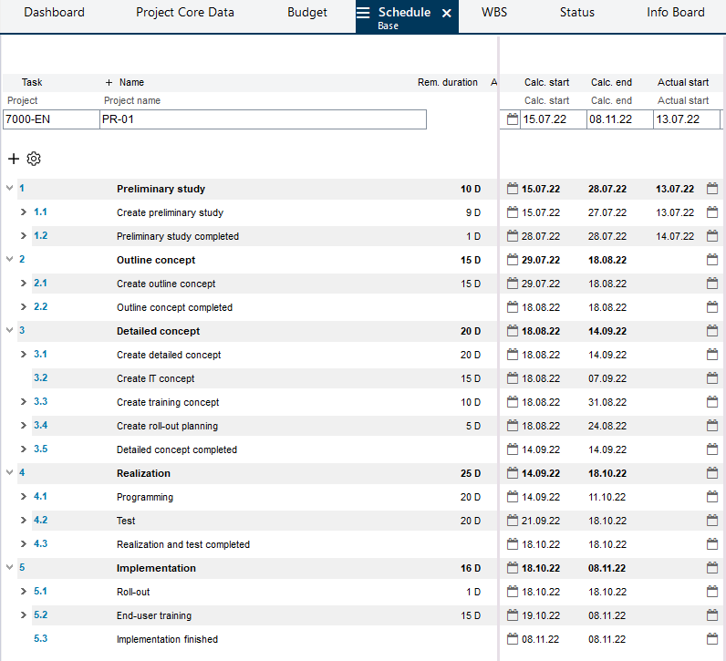 Result: Tasks are displayed to which resources are assigned and the actual data of which lies within the required period.