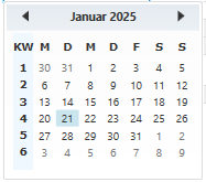 In a PLANTA standard system, date listboxes with calendar control are stored on all input date fields.