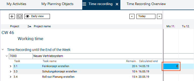This option is only available in some modules, e.g. in a variant of the Time Recording module.