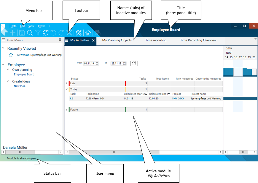 In PLANTA, a module (also called view) is a unit which enables you to display and edit data from the database (e.g. project data).