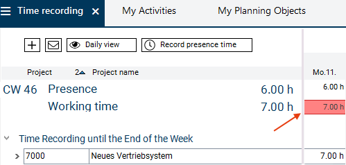Die Breite der Spalte Projektbezeichnung im Modul Projekte verringern.