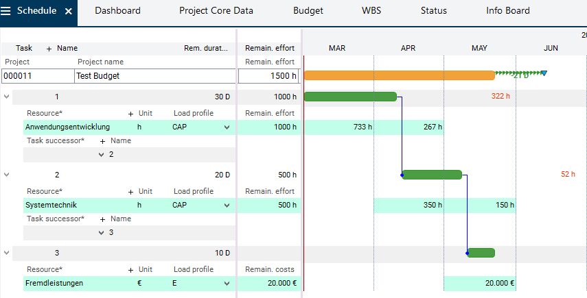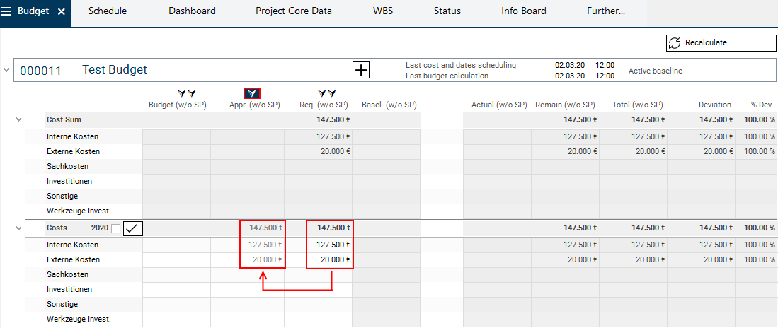 • Afterwards, the main project manager will set the approved budget values as budget for the project
