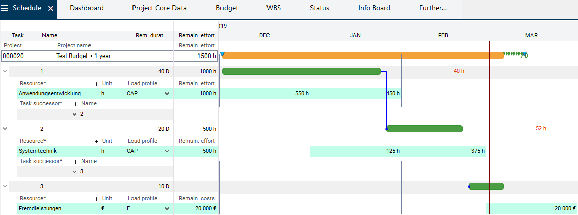 • The splitting of the budgets over several years is not necessary in this example since the project has a runtime of less than one year.