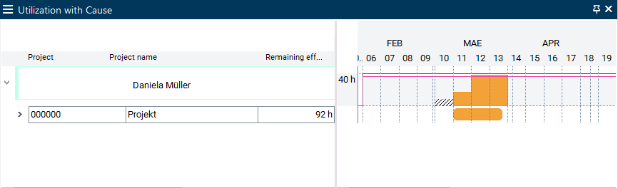 | Work reportings do not change the planned hours. | ≠ | The reported hours are subtracted from the planned hours. If a new load record is added to a defined interval, the remaining effort is increased respectively. |