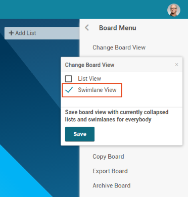Select the Change board view entry.