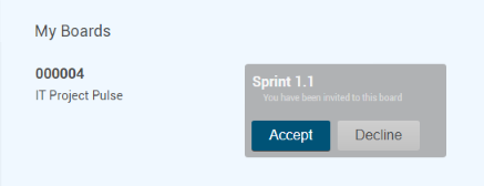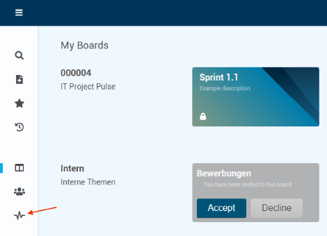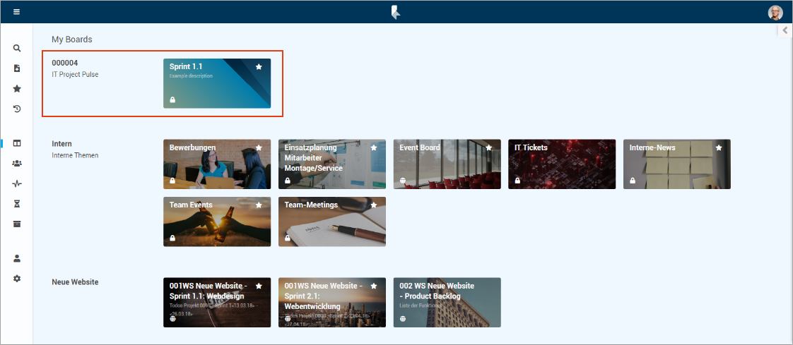 The next time Thomas Schaefer opens PLANTA pulse, he sees the IT Project Pulse project in the My Boards section and the subordinate board of Sprint 1.1 to which he was invited.