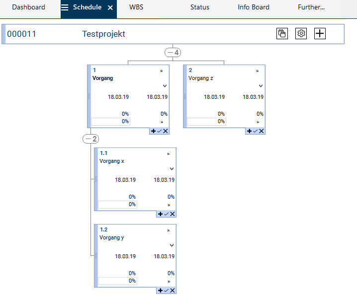 Here, the structure created in the Schedule module is displayed graphically.