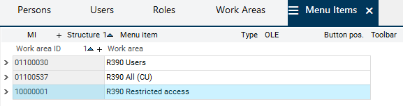 Via the role assignment the user is given access rights to certain objects (modules or menu items that have been grouped into work areas).