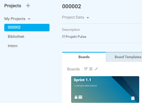In the initial synchronization of a project task, a board template containing a standard structure is copied into the respective board in PLANTA pulse. This structure can be adjusted if required.