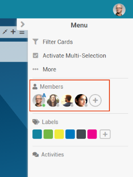 A board member can also be assigned to a card by dragging his/her avatar from the sidebar to the card via Drag&Drop.