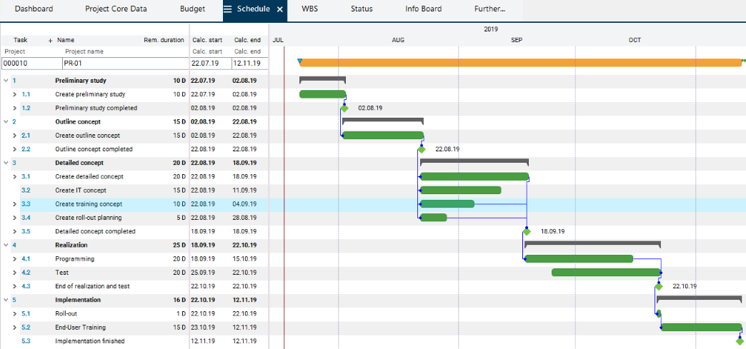 • Create a schedule on the basis of a project template, e.g. a template for IT projects.
