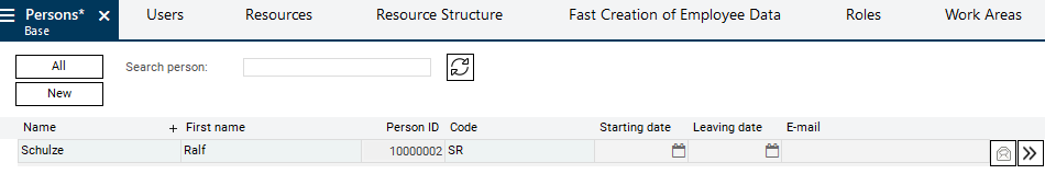 • In the Persons module, in the person resource data record for Ralf Schulze, click on the link on the name in the Person resource field.