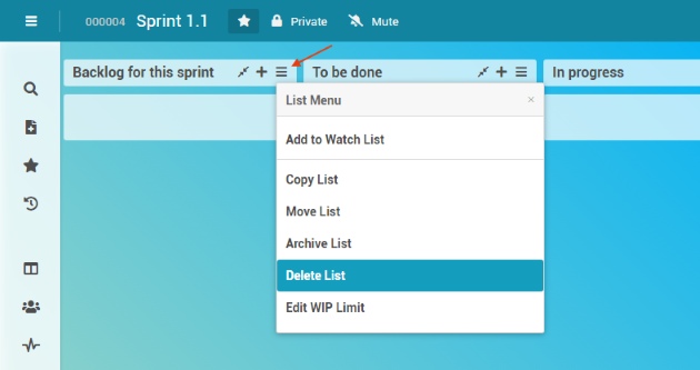 Click on the button in the heading line of the Backlog for this Sprint list to open the list menu.