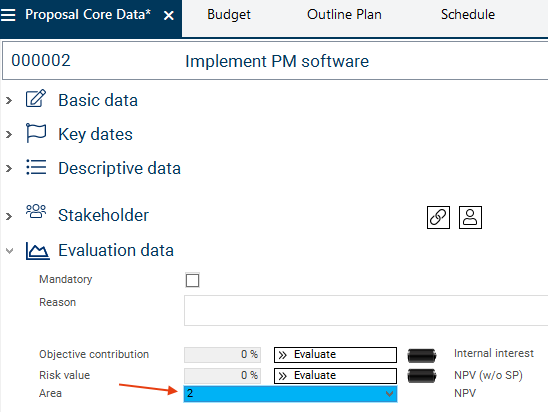 In this module, areas and groups are only selected in order to be used to outline objective evaluation criteria. The areas are created in the Portfolio Listbox Values module.