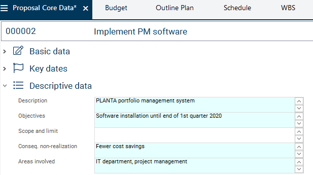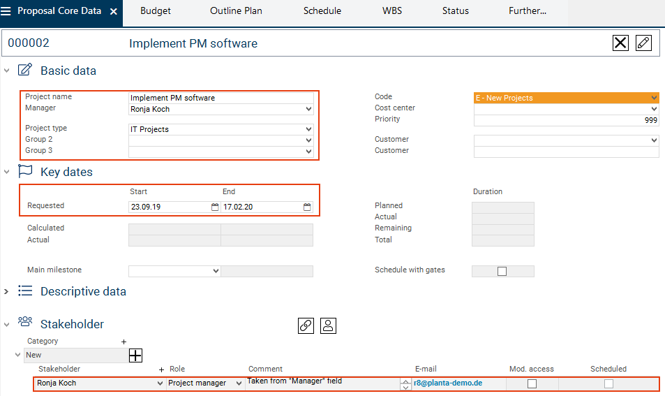 As a result, the main persons responsible are assigned to the proposal, i.e. the persons who are supposed to elaborate it and turn it into a project. Further stakeholders, which do not yet play any role in this phase, are added when the proposal is approved and turned into a project.