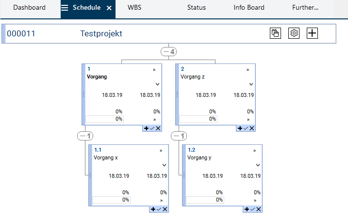 • Here, the structure created in the Schedule module is displayed graphically.