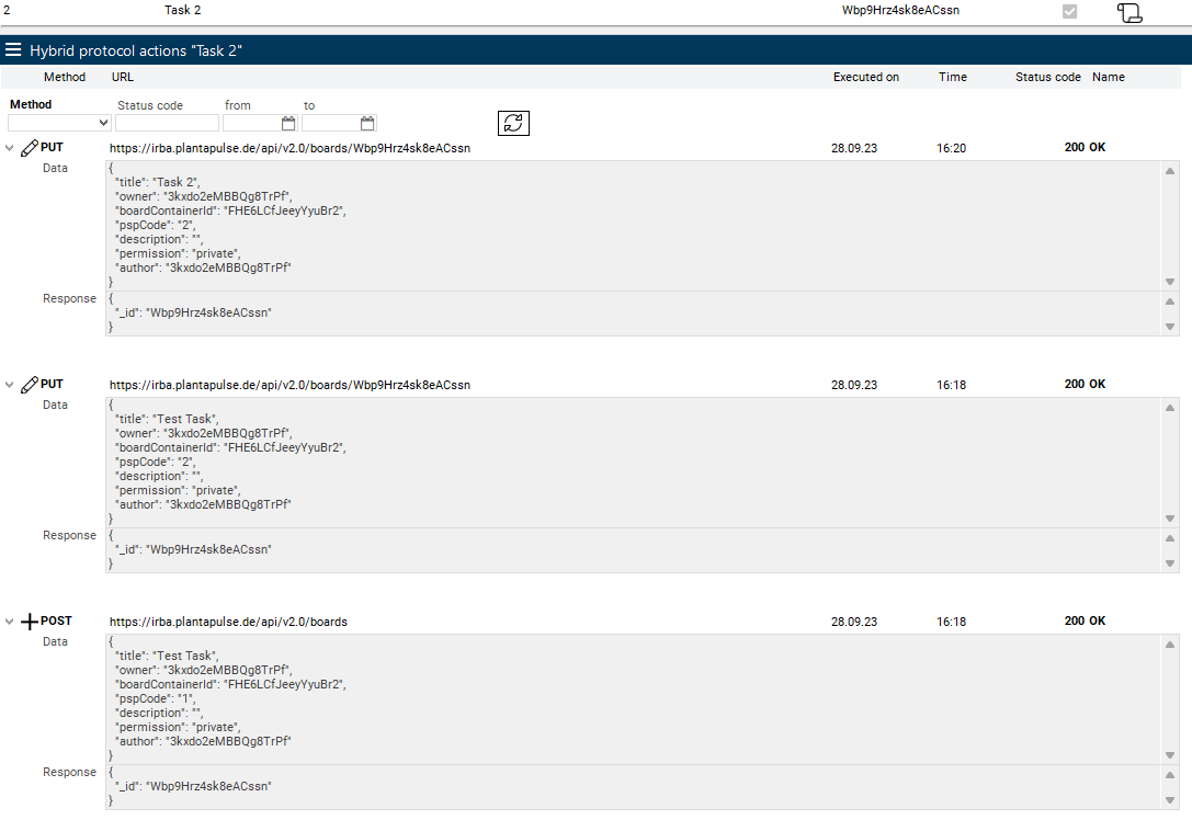 2) The record was updated with a PUT and the WBS code was changed to 2