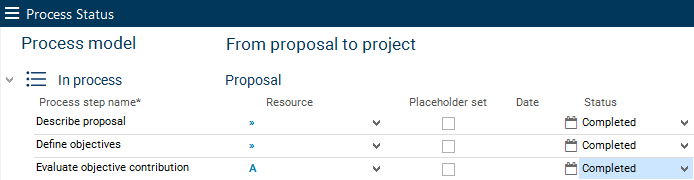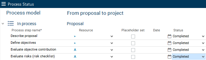 You can select a status from the listbox for each process step.