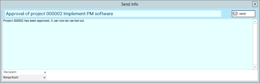 After approval of the budget, Wera Heine now wants to approve the proposal. Subsequently she wants to inform the project manager Ronja Koch about the approval.