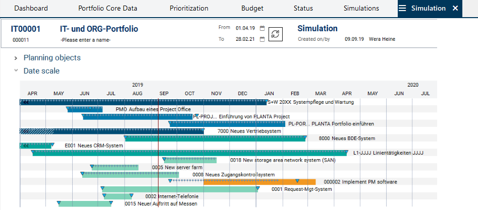By the color display of the planning objects by code, the portfolio manager can immediately tell which planning objects cause the Overload. It is primarily the new proposal the code color of which is "orange".