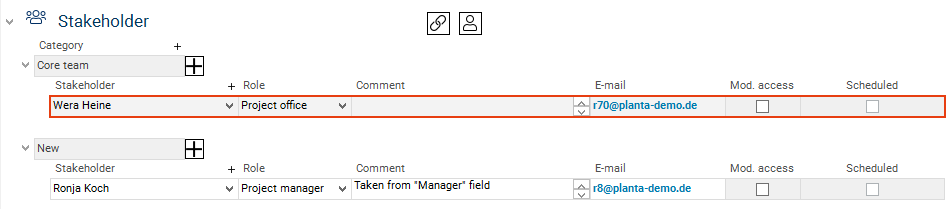 As a result, the new manager is set as a stakeholder in the Stakeholder area and Wera Heine is deleted as a stakeholder.